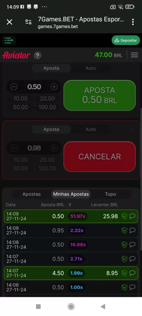 aviator vela de 50x