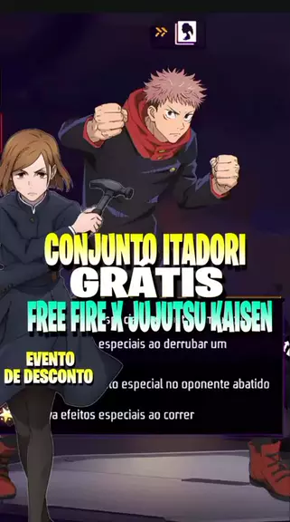 Conjunto Itadori chegando grátis e mais novidades da nova parceria do Free Fire com Jujutsu Kaisen! #FreeFire #foryou