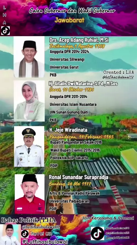 inilah Biografi dan Pengalaman Calon gubernur dan cawagub Provinsi Jawabarat.##CalonGubernurJabar#acepadang#gitakdi#jejewiradinata#ronalsupradja#pilkadajabar#pilkada2024#lutfihasibulawal#kanglutfihaswal