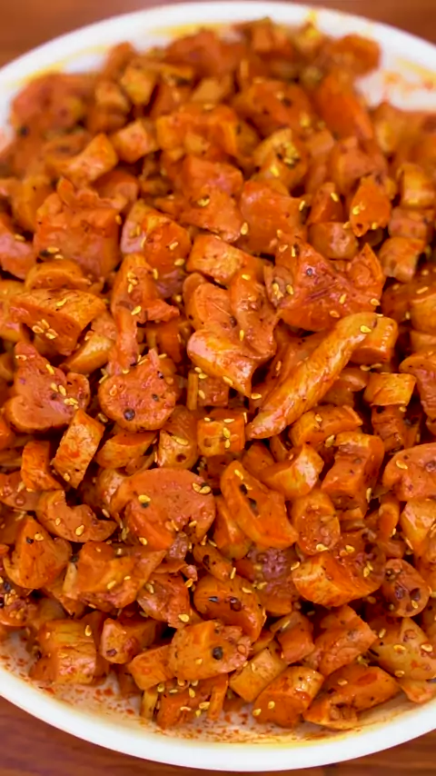 Lobak kering pedas ini terbuat dari lobak putih, yang renyah, sedikit pedas, dan lezat. # Pedesaan Food # Pedas Lobak kering