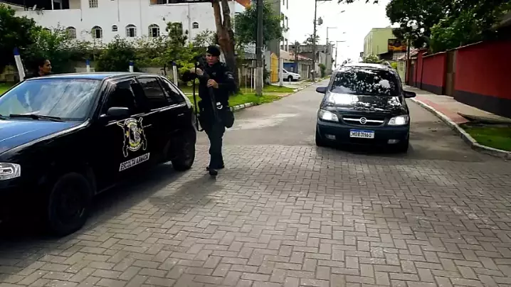 Recorte da cena do filme Escolta Armada 2 onde um agente de segurança é agredido verbalmente e ameaçado