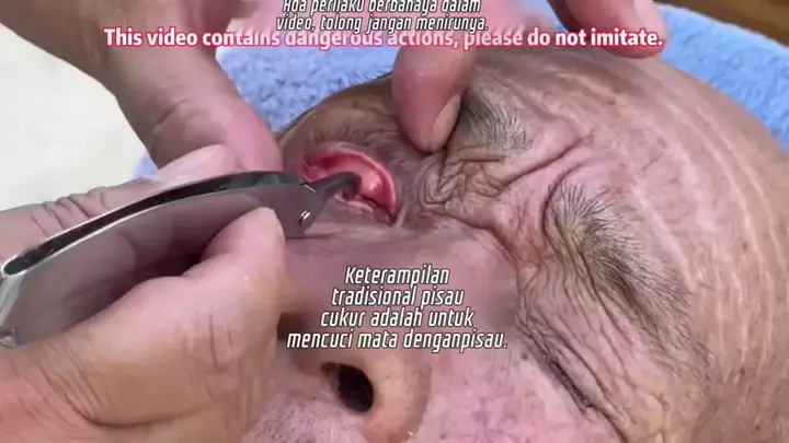 Keterampilan tradisional pisau cukur adalah untuk mencuci mata dengan pisau.