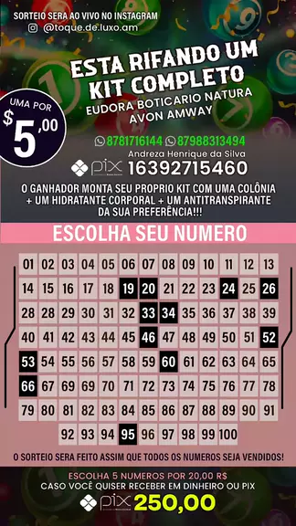 toque de luxo AM preparou, e todos vocês podem participar de um kit completo, com tudo do seu gosto, Uma colônia + um hidratante corporal + um transpirante, o ganhador pode escolheQr, receber em dinheiro ou no PIX no valor de r$ 250,00 para o contemplado! 🛍😍 1 número 5,00 ou 5 números 20,00 Você tem todo o Brasil 🇧🇷 pode escolher seu número da sorte e participar também! Chave pix CPF 16392715460 Manda o comprovante para validar 8781716144 ou 8788313494 #Rifa #SORTEIO