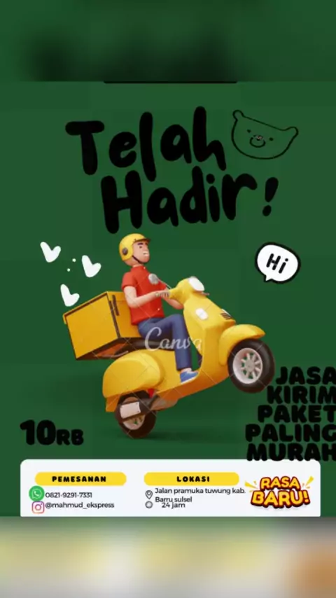 Halo Kak.harap di save nomor kami kak mana tau butuh jasa kirim paket COD kak di kemudian hari馃檹馃檹 Mahmud ekspress adalah platform jasa pengiriman se indonesia dengan layanan COD tampa marketplace yang bekerjasama dengan kurir pengiriman paket nasional. Mahmud ekspress siap kirim paket sampai ke tujuan, dengan lebih dari ratusan kurir ekspedisi profesional seperti J&T, JNE, SAP, Sicepat dan mitra kurir kami lainnya di seluruh Indonesia . Dengan biaya kirim 1.dalam kota Rp. 10.000 #Lomb