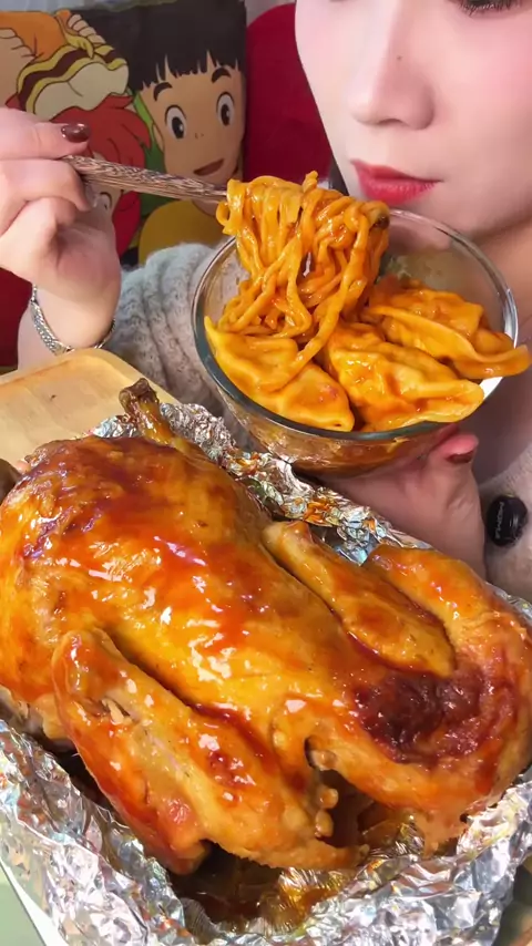 Dumplings 🥟 Spicy Chicken Noodles + Roasted Chicken #mukbang #asmr #food #ZinsFamily #Snackstyle