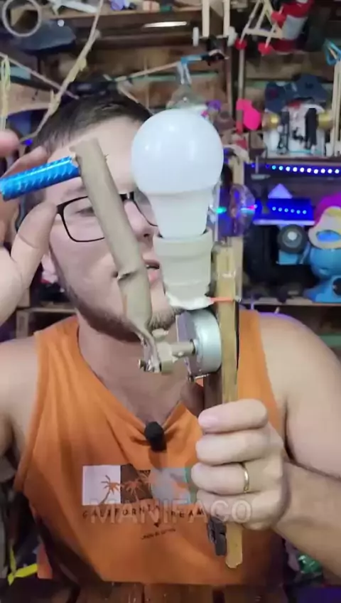 Fiz um gerador de energia a manivela com motor de micro-ondas! Acende até lâmpada!