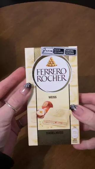 Barra de Ferrero Rocher Branca: uma combinação deliciosa de creme de avelã e pedacinhos crocante de avelã com chocolate branco 😋 #experimentando #Doces #chocolate #ferrerorocher #NOVIDADE