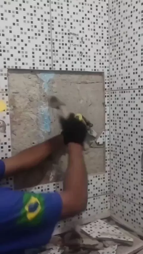 #gabinete de banheiro feito com sobras de piso e azulejo a prova d'água