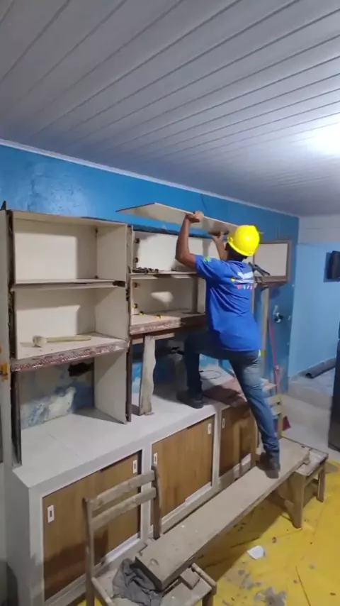 armário suspenso e reforçado feito com porcelanato ou revestimento comum