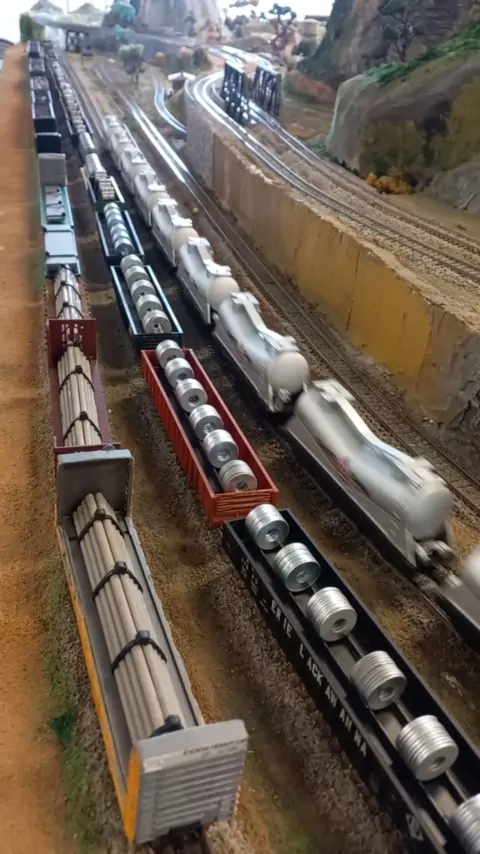 Ac44i e U5b MRS puxando vagões de cimento Ciminas. #Ferromodelismo #AMF #hobby #Locomotiva