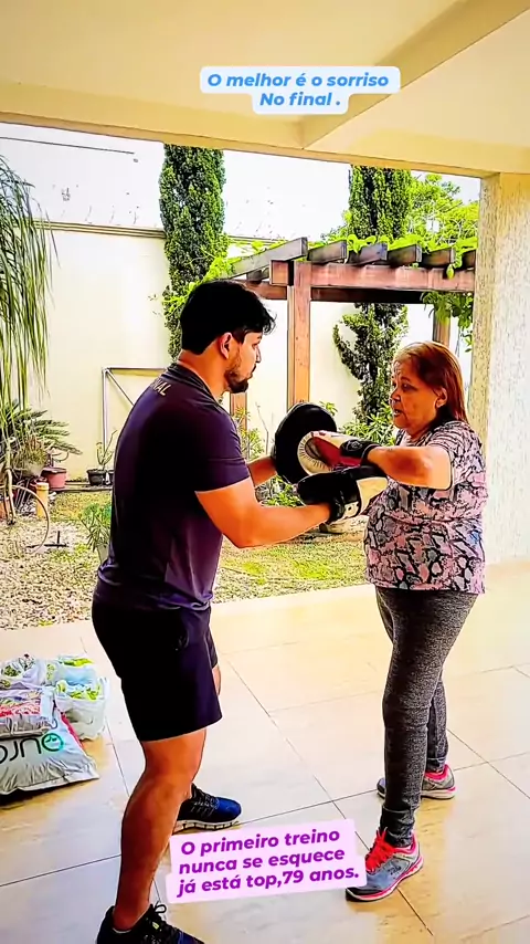 treino boxe idosa 79 anos alegria total no final da sequência.