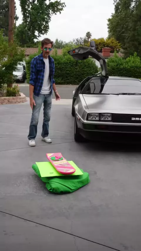 Veja um pouco dos bastidores de como eu fiz o hoverboard flutuar em um orçamento. # DeLorean # backtothefuture # VFX.