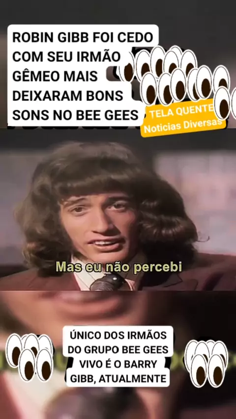 ROBIN GIBB FOI CEDO COM SEU IRMÃO GÊMEO, MAIS DEIXARAM BONS SONS, NO BEE GEES, E, O ÚNICO DOS IRMÃOS DO, GRUPO BEE GEES VIVO, É O BARRY GIBB, ATUALMENTE. #Notícia
