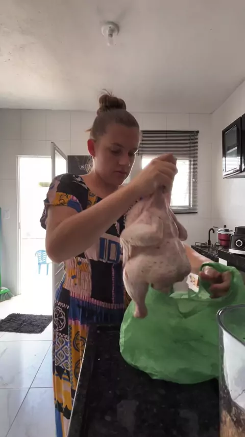 Preparando o frango pra assar