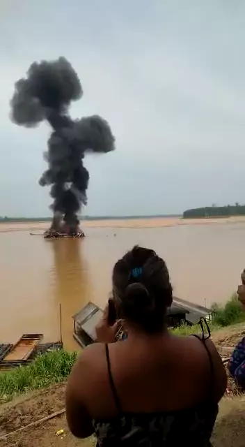 dia 12/10/2022 federal destruindo balsa de garimpo no rio madeira- AM #forabolsonaro #eleições2022 #kwai