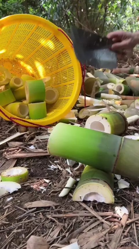 Saya dulu bermimpi menjadi pria yang ingin berjalan di seluruh dunia dengan pedang, tetapi sekarang saya difoto dengan dingin oleh kenyataan, dan saya hanya bisa kembali untuk menebang rebung. Apakah Anda ingin datang dan menebang rebung dengan saya? # Rebung segar
