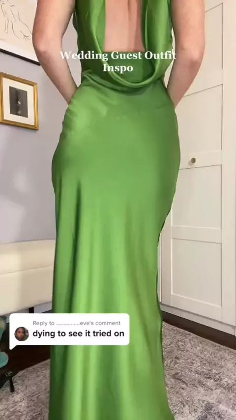 Responder a um pequeno vestido de noiva convidado experimentar para você! Eu amo esse vestido, mas definitivamente preciso de um sutiã pegajoso e um pouco de fita adesiva! # wedding2022 # weddingguestdress # weddingguestoutfit # vacationdressvibes # greendresses # meshki # formaldresscheck # blacktieweddinginspo