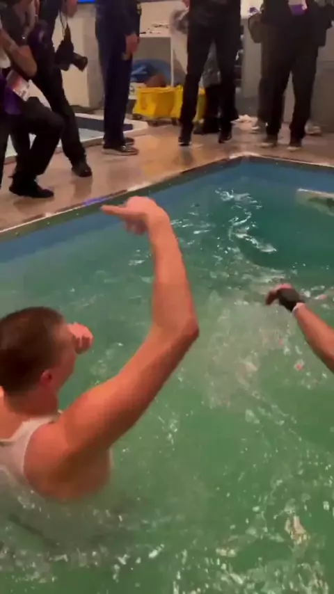Nikola jokic joga Jamal Murray na piscina após conquista do título da NBA #NBA #jamalmurray #Nicolajokic #campeoesNBA