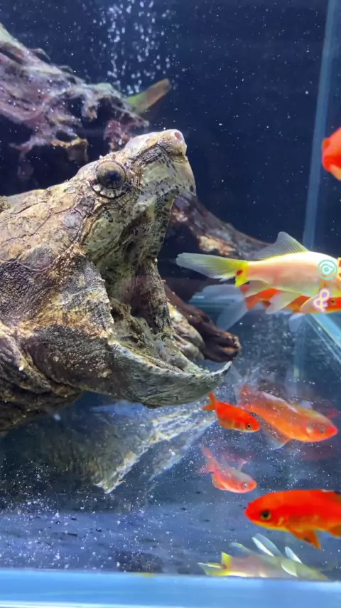 Tapi tidak mudah bagi kura-kura aligator untuk menangkap ikan.! # CrocodileTurtle # Aquarium.