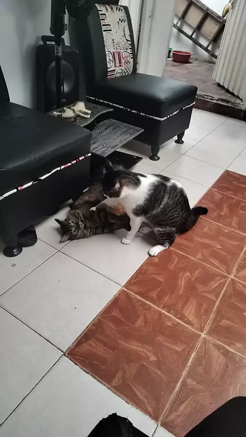 Quien ganará en esta contienda #adoptanocompres #felina #Michi #lovecat #catlover