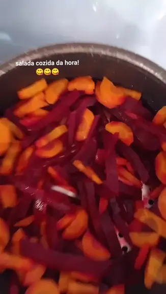 salada cozida cortes em pedaços cenoura + beterraba coloque na cuscuzeira e deixe cozinhar por 10 minutos . @Danielly Cardoso855(O150000209921812) @Dayene Morais920(O150000205443024) @Aldemir Pereira Barbosa(O150000224044940)