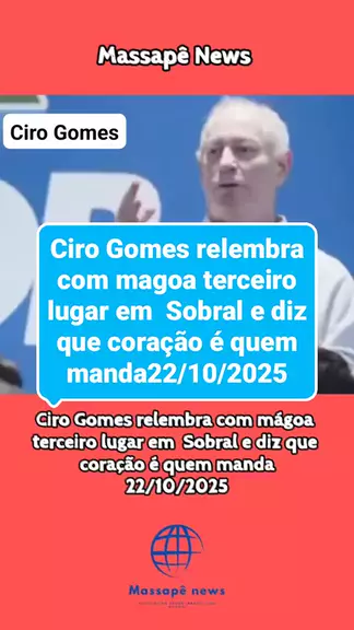 #noticias #politica #viraliza #ciro #afiliação Ciro Gomes relembra com magoa terceiro lugar em Sobral e diz que coração é quem manda 22/10/2025