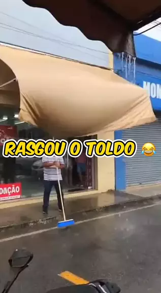 Foi tirar a água do toldo e rasgou tudo! O banho de água suja na frente da loja ☔💩 #Chuva #Loja #Fail #Limpeza #Prejuizo"