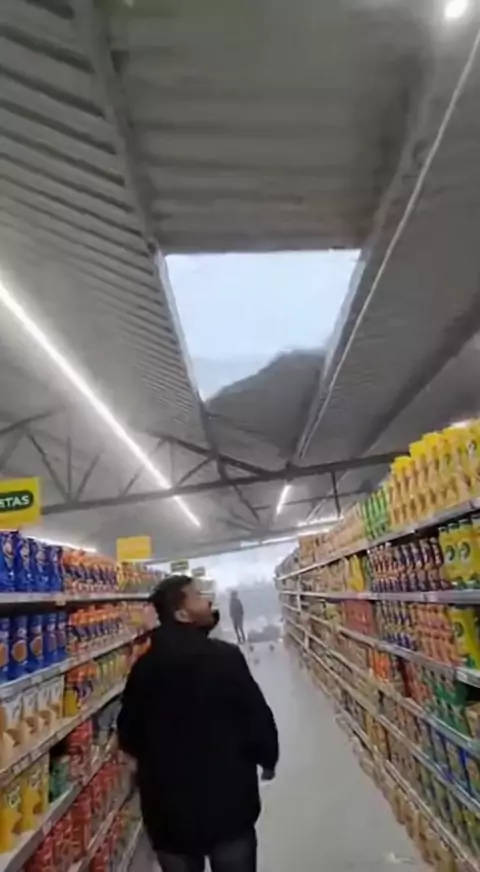 Morador registra teto de mercado caindo durante vendaval #vento #teto #cidade #mercado #supermercado