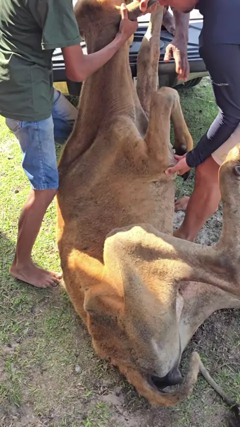 colocando a vaca 🐄 🐄 no carro