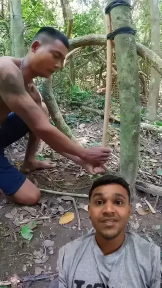 essa armadilha que ele fez dentro da mata funcionou!