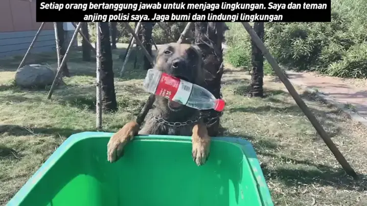 Setiap orang bertanggung jawab untuk menjaga lingkungan. Saya dan teman anjing polisi saya. Jaga bumi dan lindungi lingkungan