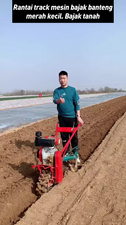 Rantai track mesin bajak banteng merah kecil. Bajak tanah