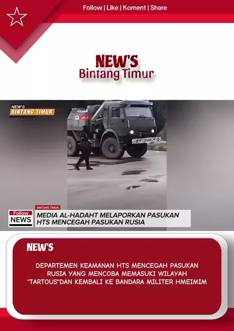 Setelah 10 jam menunggu... adegan khusus dari “Al-Hadath” yang mendokumentasikan momen Departemen Operasi Militer mencegah pasukan Rusia memasuki Tartous dan kembalinya mereka ke Bandara Militer Hmeimim Suriah Tartous Al-Hadath_channel. Sub: بعد 10 ساعات من الانتظار.. مشاهد خاصة من “الحدث” تو ثق لحظة منع العمليات العسكرية دخول القوات الروسية إلى طرطوس وعودتها إلى مطار حميميم العسكري سوريا طرطوس قناة_الحدث#BREAKING#newsbintangtimur#militerrusia🇷🇺#rusia🇷🇺#hts🇸🇾#suriah🇸🇾#sna🇸🇾