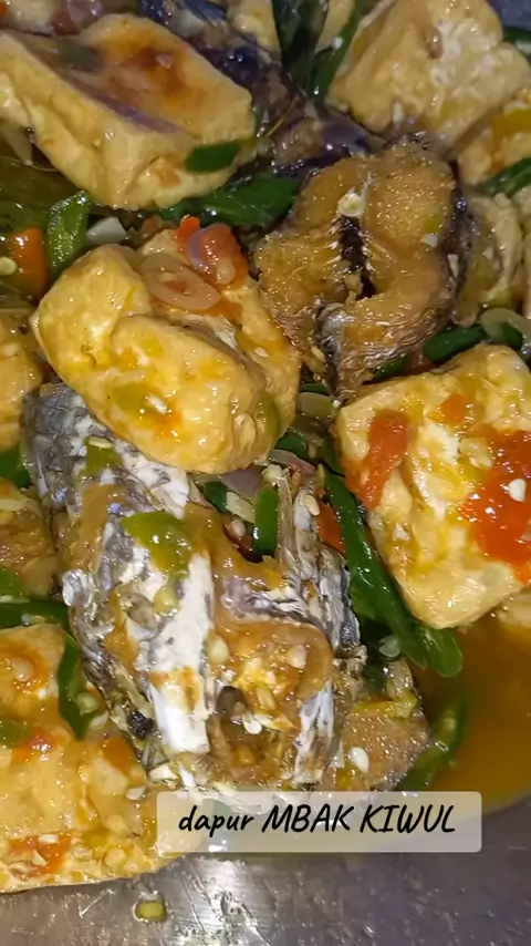 dapur MBAK KIWUL tauco ikan gabus bahan bahan ikan gabus goreng tahu goreng cabe hijau besar iris daun salam tauco bamer iris baput iris bumbu yg dihaluskan cabe rawit bamer tomat tambah kn garam secukupnya gula pasir penyedap #menuhariansimpel #masakansederhana #aladapurmbakkiwul