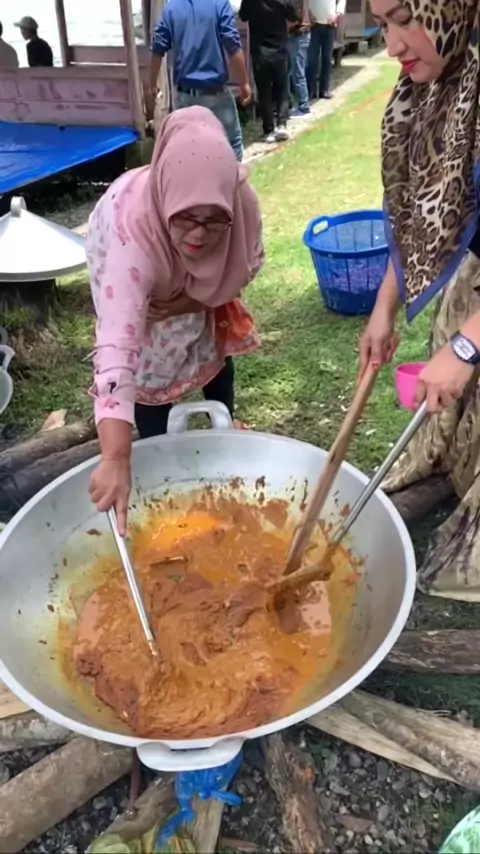 Bersama ibu2 di pantai menye laut tawar, masak kari kambing khas Aceh tengah🤤 #dapubabebabe #daunteumeurui #khasacehtengah # e a