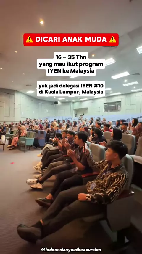DIBUKA PENDAFTARAN !!! PROGRAM FULLY FUNDED INDONESIA YOUTH EXCURSION NETWORK 2025 CHAPTER KUALA LUMPUR, MALAYSIA BATCH #10 Indonesian Youth Excursion Network (IYEN) mengajak para pemuda-pemudi yang ingin melakukan ekspedisi penuh inovasi untuk meningkatkan kapasitas dan kapabilitas diri dalam hal Leadership, Public Speaking, Critical Thinking dan Problem Solving sebagai upaya aktualisasi dari ilmu peserta yang nantinya akan bermanfaat untuk masyarakat. Kegiatan ini akan dilaksanakan di Kuala ...
