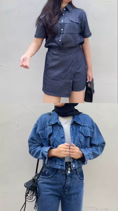 siapa yang juga suka banget ama denim? βΊπ#jaketdenim#onesetdenim