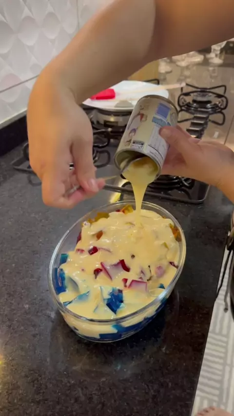 Gelatina Colorida Cremosa #AprenderComFamília #gelatina #colorida #leitecondensado