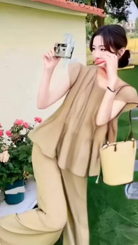 CHICMORE Setelan dua potong atasan lengan pendek ruffle dan celana panjang ... #racun