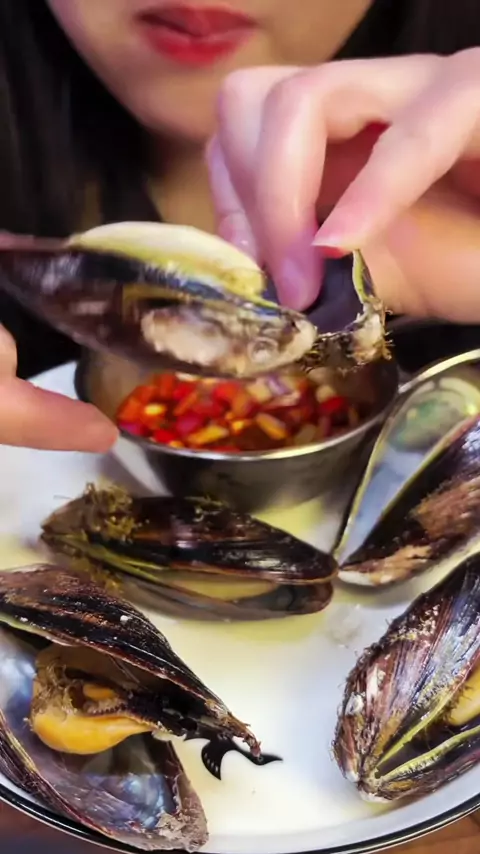 Just a little sea snail. Mussels, what do you call them where you're from? #seafooddelicacies #seamussel #mussel #mukbang