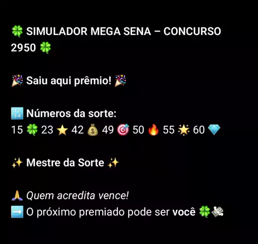 🌟 Sorte acompanha quem confia sem medo do resultado. ✨🍀 QUEM ACREDITA, VENCE! 🍀✨ Mais um simulador feito e premiado 🎉💰 Parabéns aos vencedores 👏👏 👉 O próximo pode ser você! 🙏⭐🍀 Nunca deixe de acreditar, a sorte gosta de quem insiste 💚✨