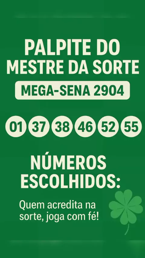 🎰✨O Palpite do Mestre da Sorte – Mega-Sena 2904 ✨🎰 🔮 Números escolhidos: 01 – 32 – 38 – 46 – 52 – 55 👉 Quem acredita na sorte, joga com fé! 🔥 O Mestre da Sorte já deixou seu palpite, agora é sua vez de acreditar! 📌 Comente aqui: você jogaria esses números? #MegaSena #MestreDaSorte #Palpite #SorteGrande