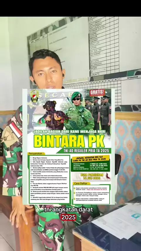 pendaftaran calon Bintara PK TNI AD th 2025 πͺπͺπͺ#edukasi#infocasis#casistnipolri#casistni#penerimaantniad2025#tni#tniad#bintaratniad#vidioviral#viral#vidioedukasi#viralvideo#viral###tniviral#beranda