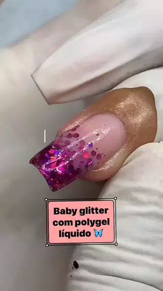 Baby glitter com polygel líquido 🦋 #CarnaKwai #nails #naildesign #fy #fy𖣘♡