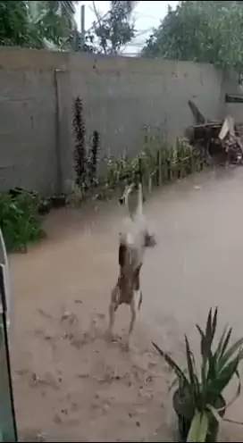 cachorro brincando na chuva. kkkkk