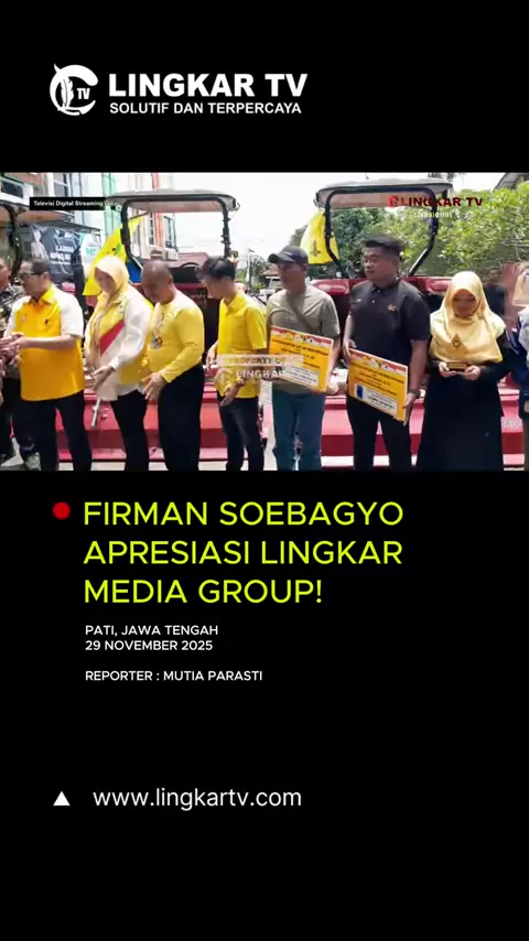 Firman Soebagyo Beri Apresiasi untuk Lingkar Media Group Atas Dedikasi dalam Menyampaikan Informasi yang Objektif dan Berimbang Pati, 29 November 2025 — Anggota Komisi IV DPR RI, Firman Soebagyo, memberikan apresiasi dan kenang-kenangan kepada Lingkar Media Group atas kontribusinya dalam menghadirkan informasi yang objektif, berimbang, dan menjembatani komunikasi antara masyarakat dan pemerintah. Apresiasi tersebut disampaikan dalam gelaran Penyerahan Bantuan Alat Mesin Pertanian yang berlangsu...