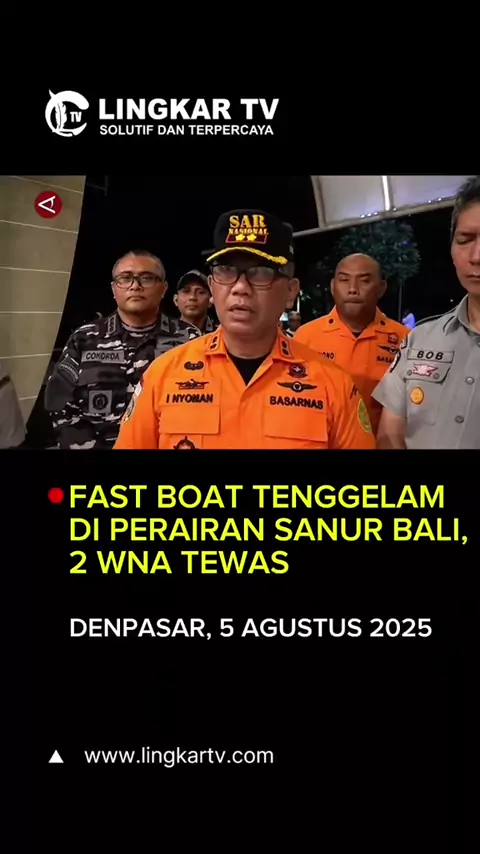 Fast boat Dolphin II yang berangkat dari Pelabuhan Nusa Penida menuju Pelabuhan Sanur, Denpasar, Bali, kandas saat memasuki alur masuk Pelabuhan Sanur pada Selasa (5/8) sore. Kapal tersebut mengangkut 80 orang yang terdiri atas 73 warga negara asing (WNA), 2 warga negara Indonesia (WNI), dan 5 anak buah kapal (ABK). Sebanyak 72 orang berhasil diselamatkan, sementara 2 WNA asal Tiongkok meninggal dunia. Satu WNI bernama Kadek Adi Pria (23) masih dalam pencarian. Proses pencarian dan evakuasi dil...