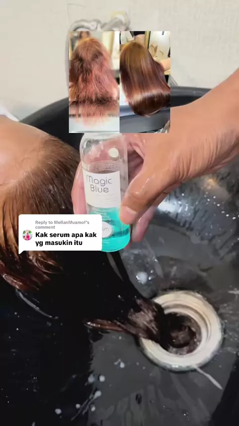 Replying to @MellanMuamof diaplikasikan setelah pembilasan step 2 treatment keratin. #riinssalon #serumblue #inaura #keranjangkuning # #treatmentrambut