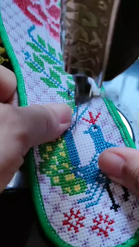 #缝纫机十字绣鞋垫 #加工十字绣鞋垫 #民间传统手工刺绣