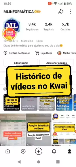 Histórico de vídeos no Kwai #kwai #videos #mlinformática #TOP